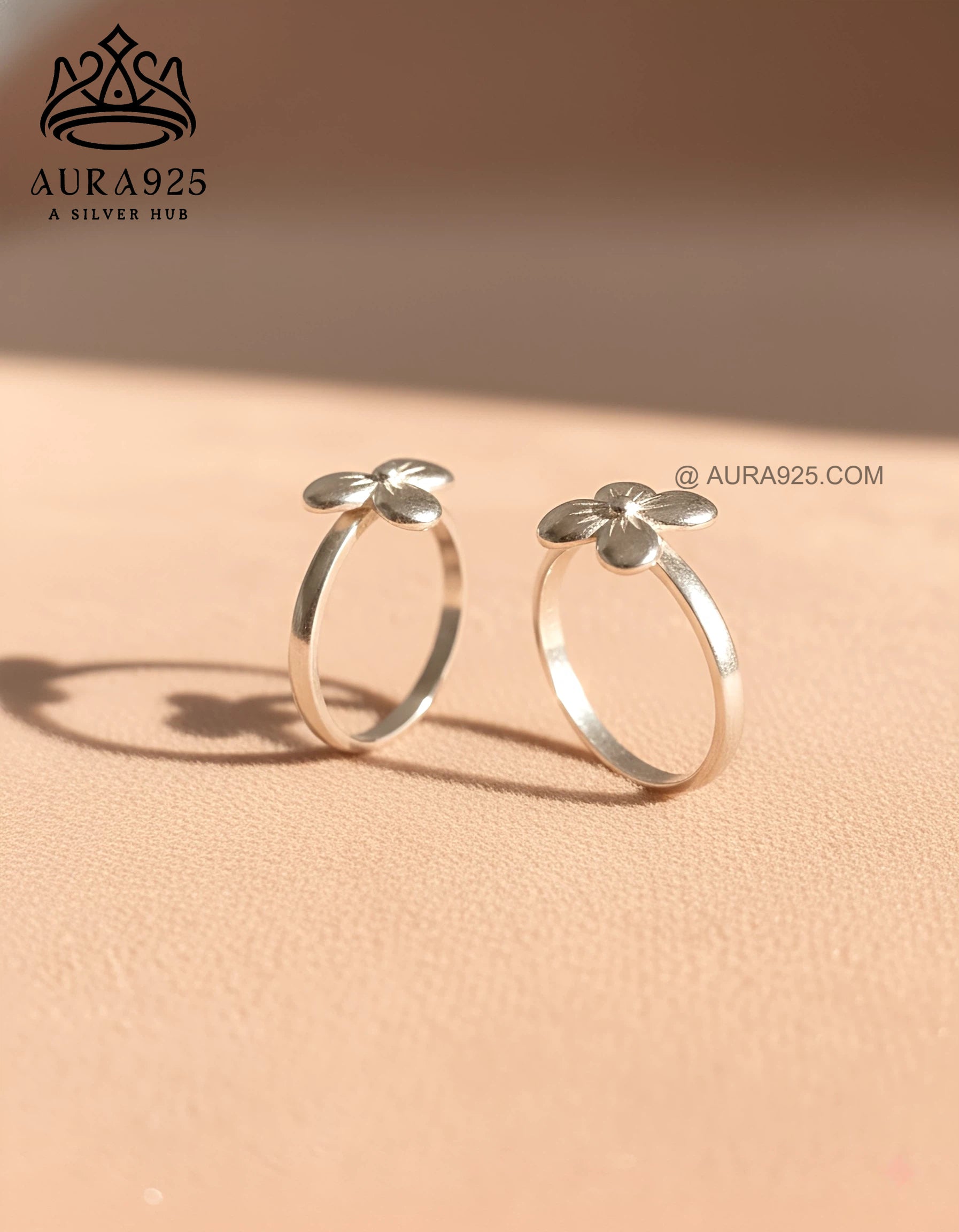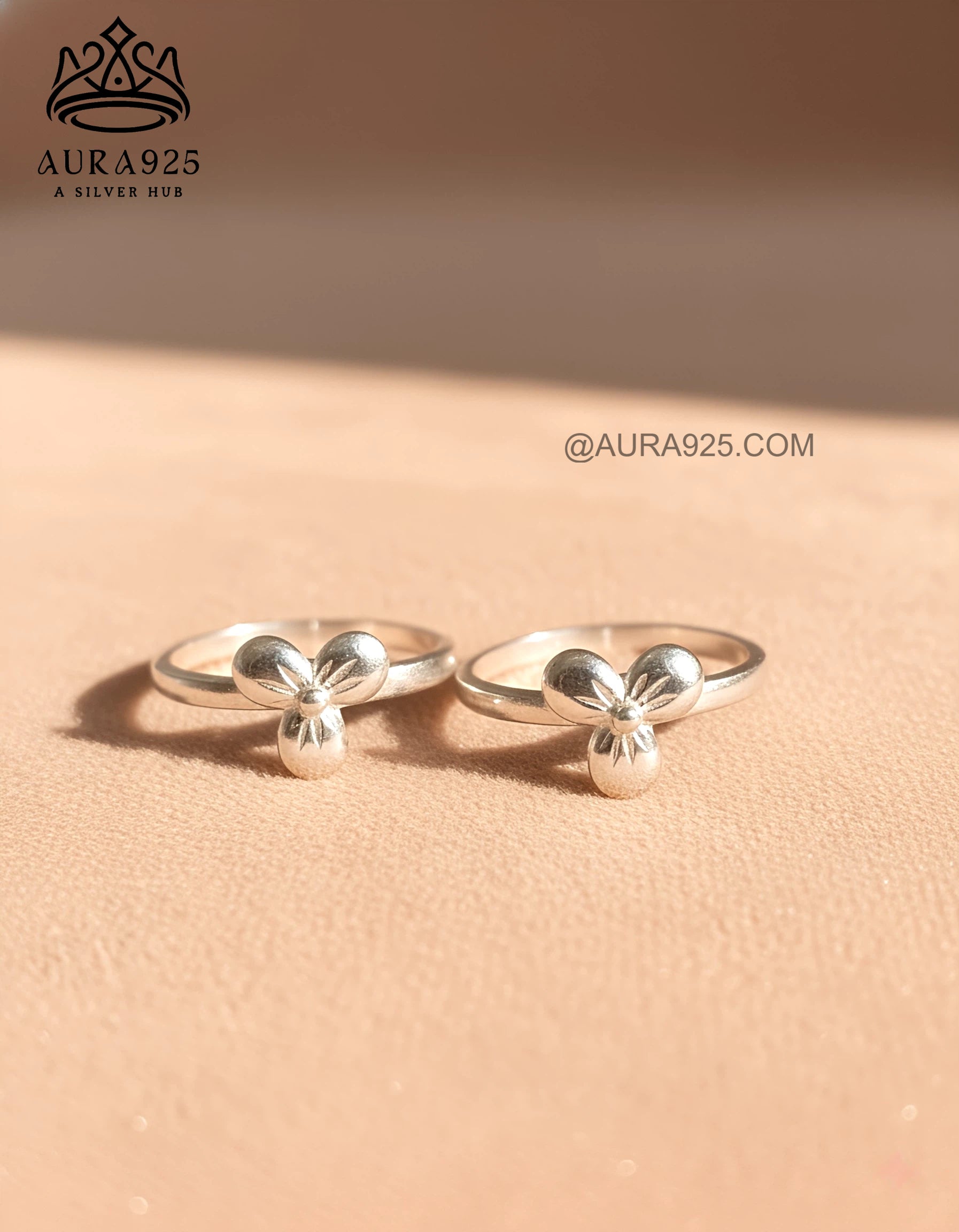 đ Minimalist Silver 925 3D Clover Bloom Toe Ring Pair đ¸