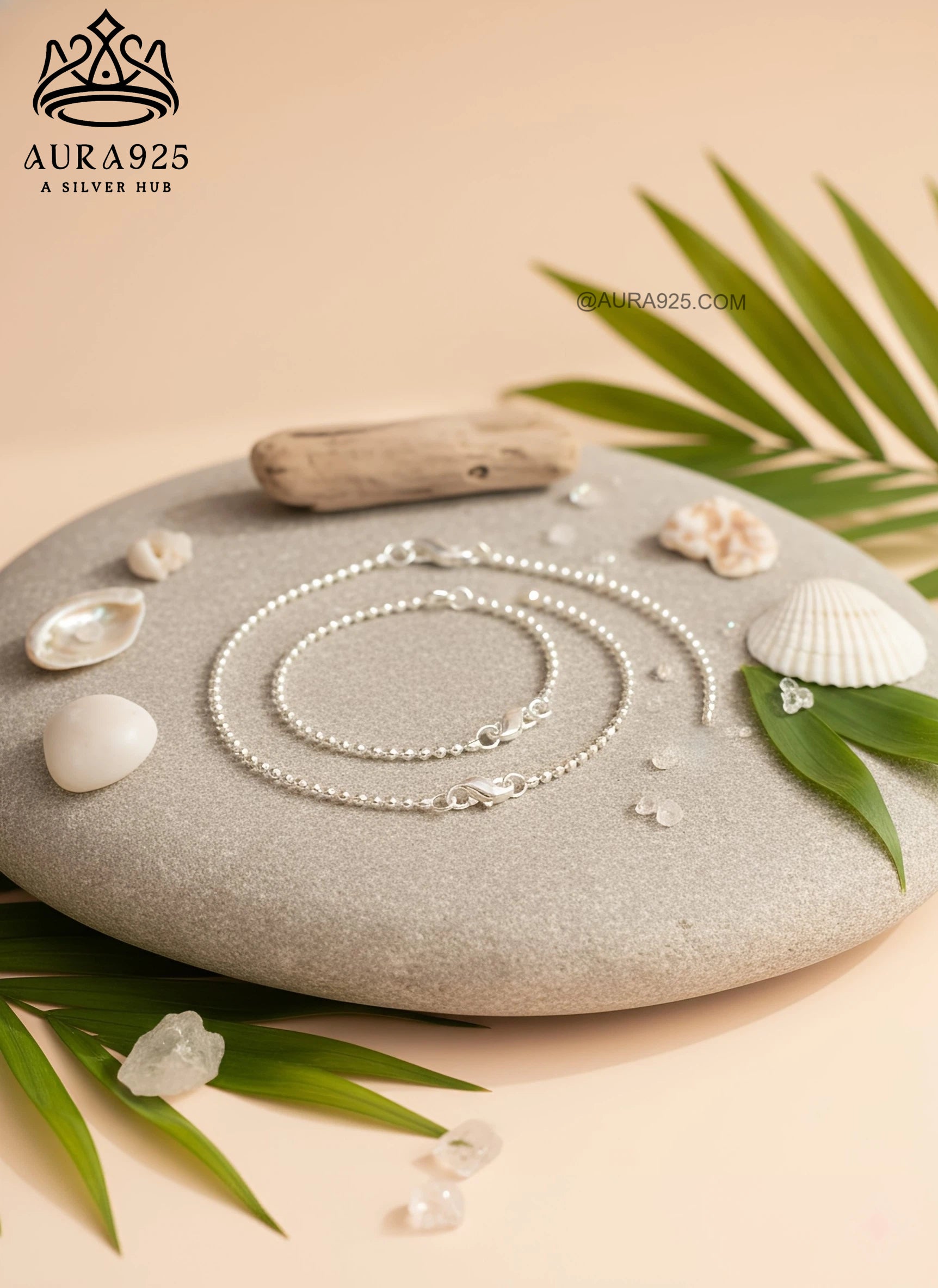 Embrace effortless summer style with this Essential Ball Chain 925 Sterling Silver Anklet Set from AURA925 - A SILVER HUB. This set features the timeless and beloved ball chain design, offering a delicate, shimmering texture that beautifully catches the light.