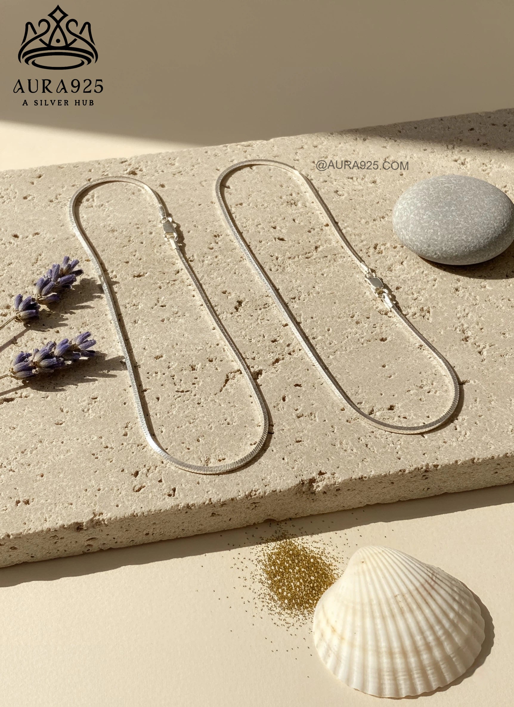 Experience the pure, fluid elegance of the Liquid Silver Flat Chain 925 Sterling Silver Anklet from AURA925 - A SILVER HUB. This piece features a perfectly smooth, sleek chain that drapes seamlessly, giving your ankle a captivating, "wet-look" shimmer that is effortlessly sophisticated.