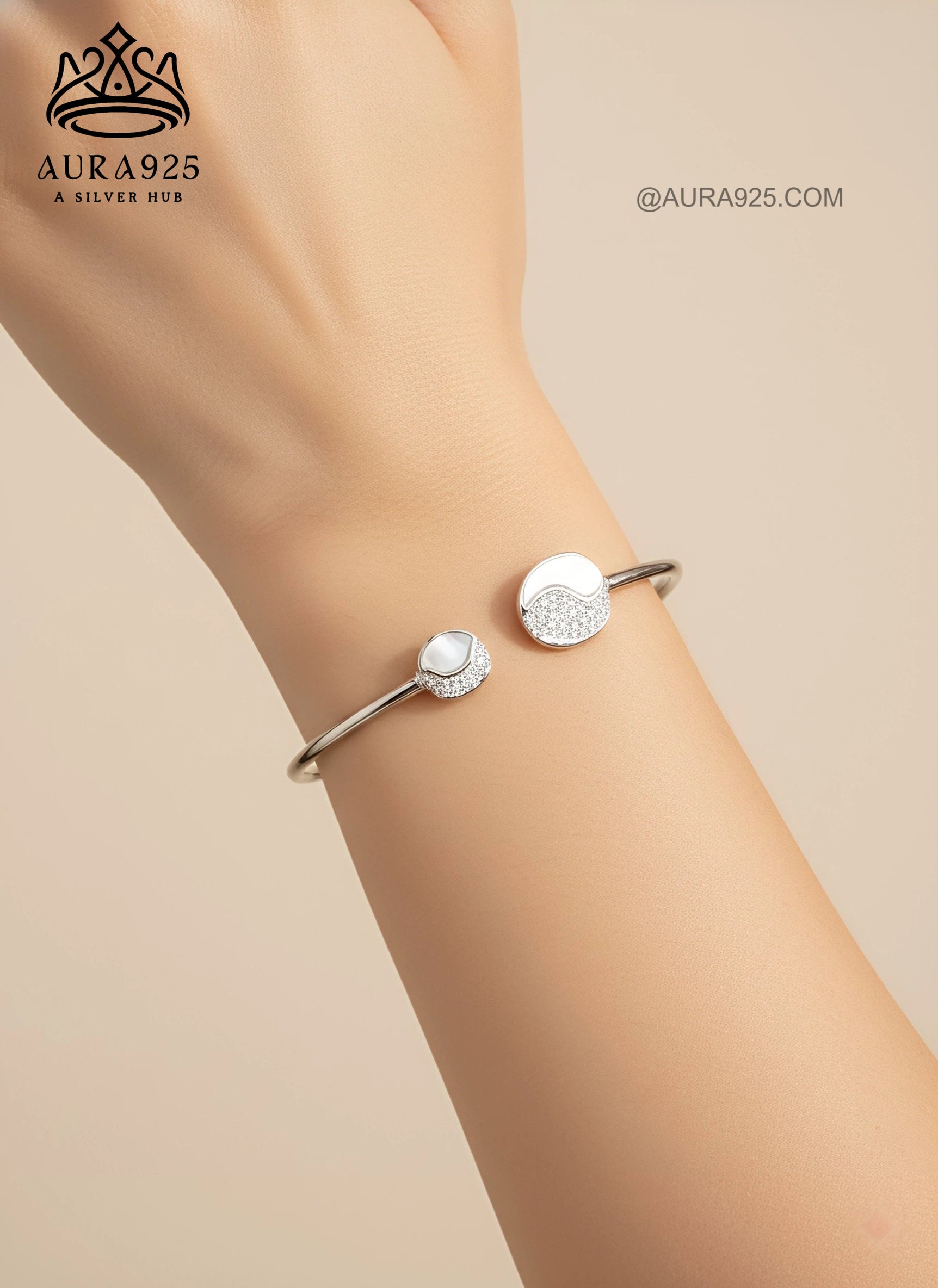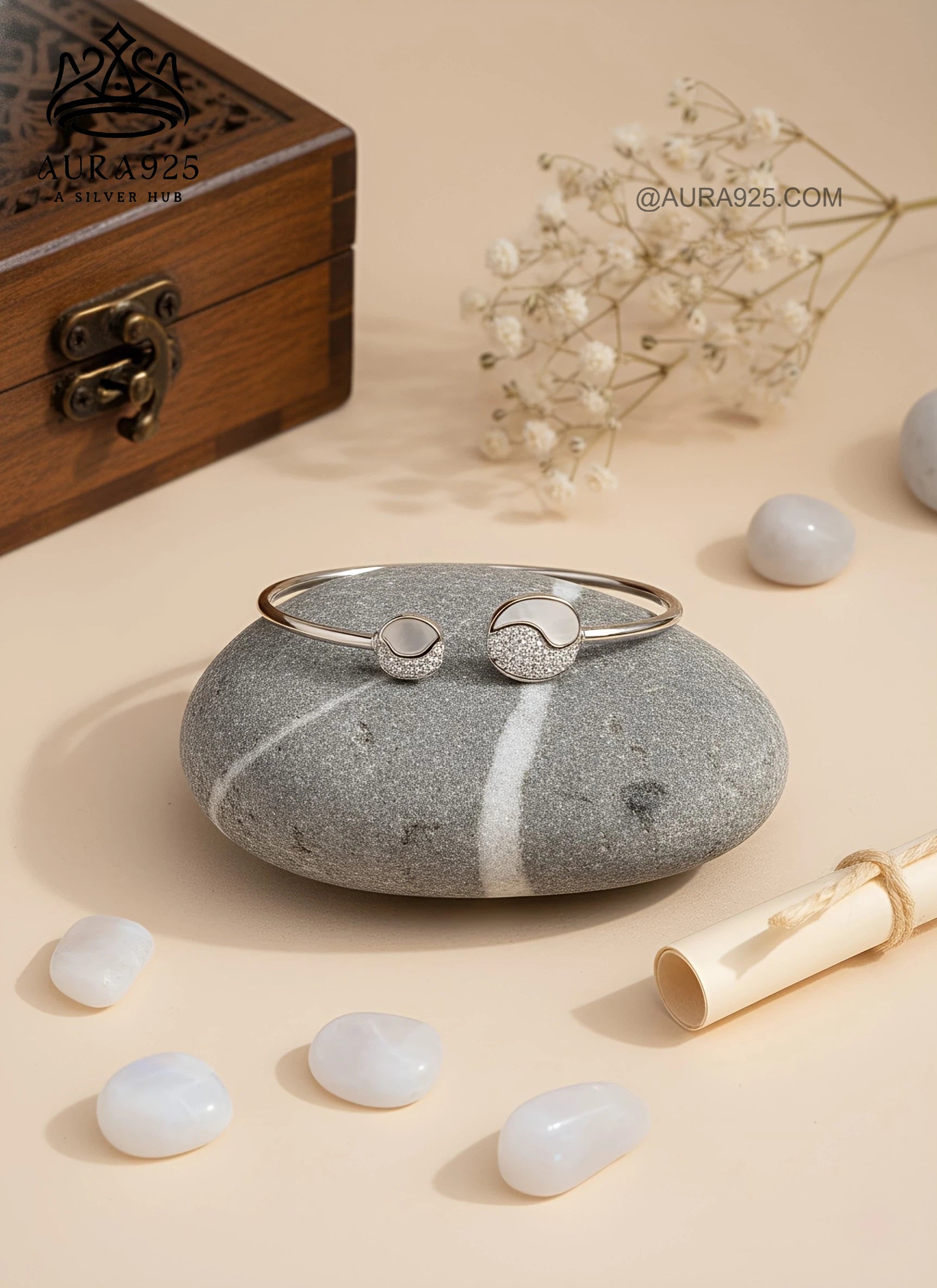 ☯️ Harmony Open Cuff Bracelet | Mother-of-Pearl & Pave CZ | 925 Silver | SLB-3632