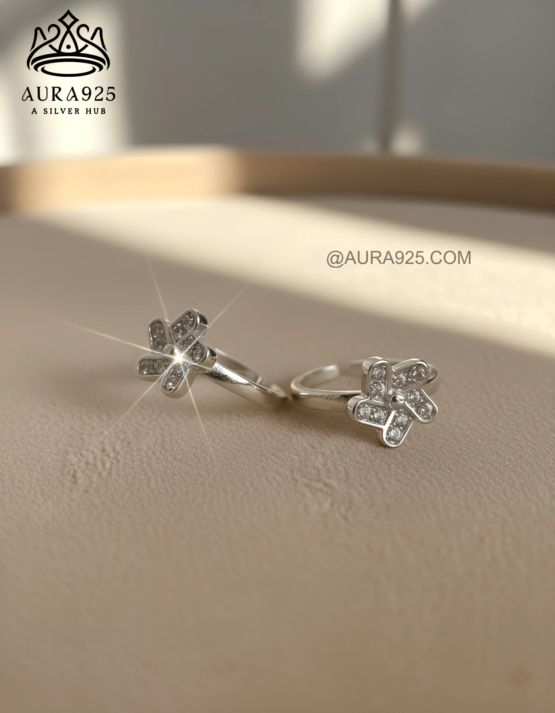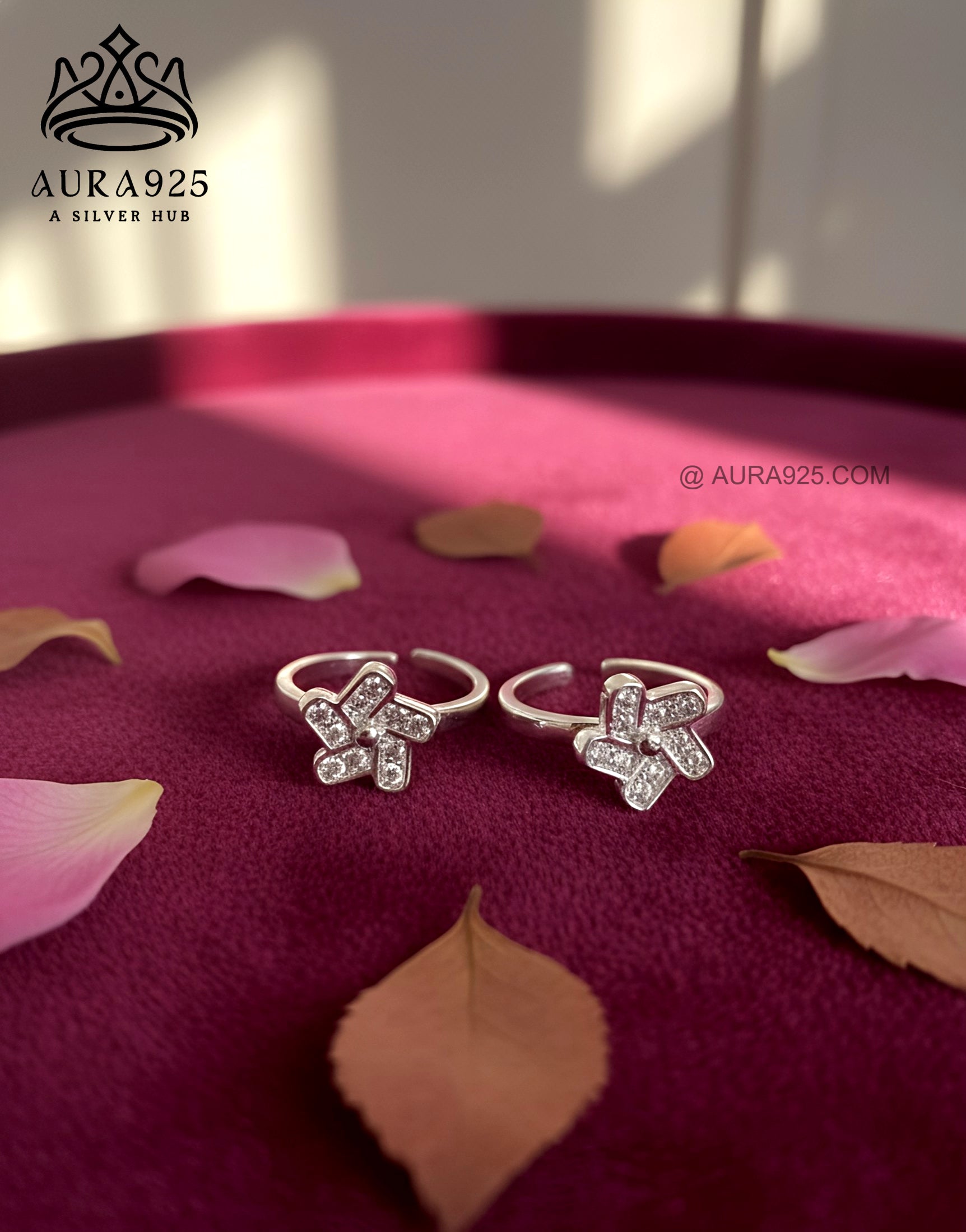 🌟 Dazzling Silver 925 Flower Toe Rings 🌟