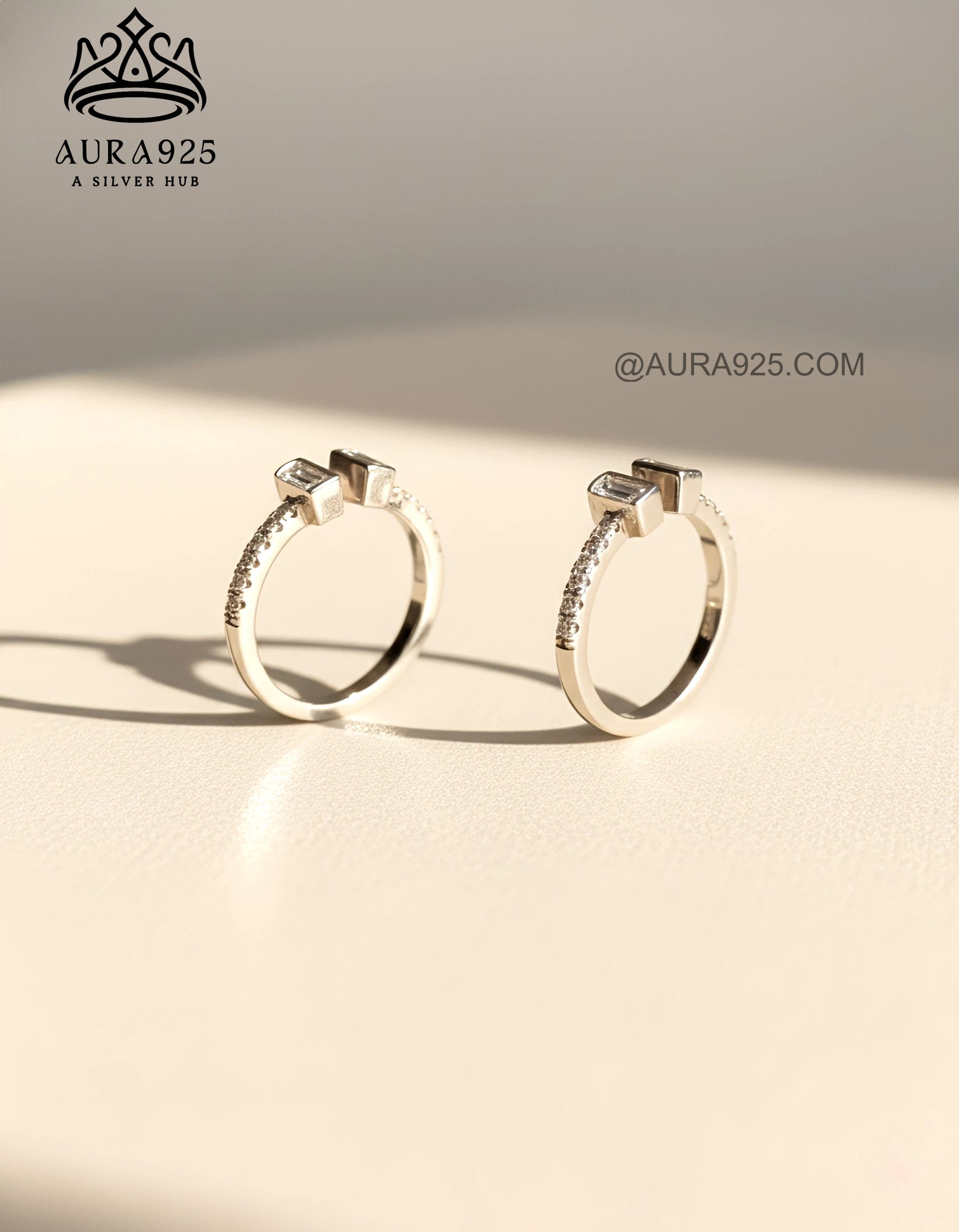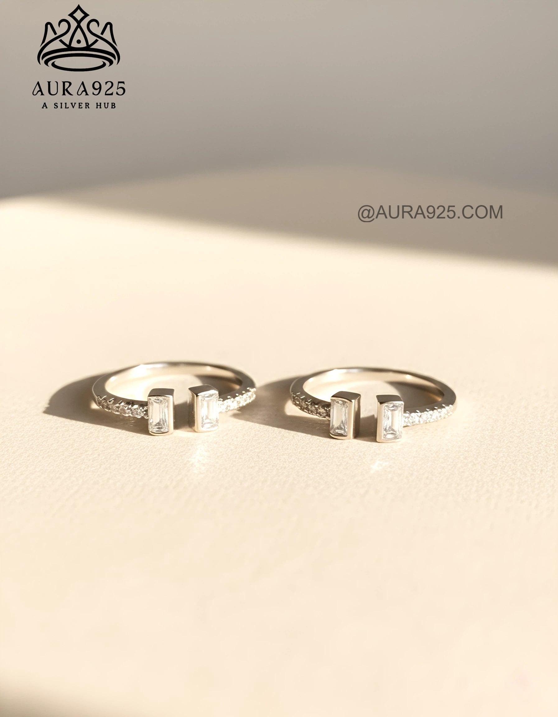 Geometric Sparkle: The centerpiece of each ring showcases two vertically set baguette-cut cubic zirconia (CZ) stones, offering a sleek, architectural appeal.