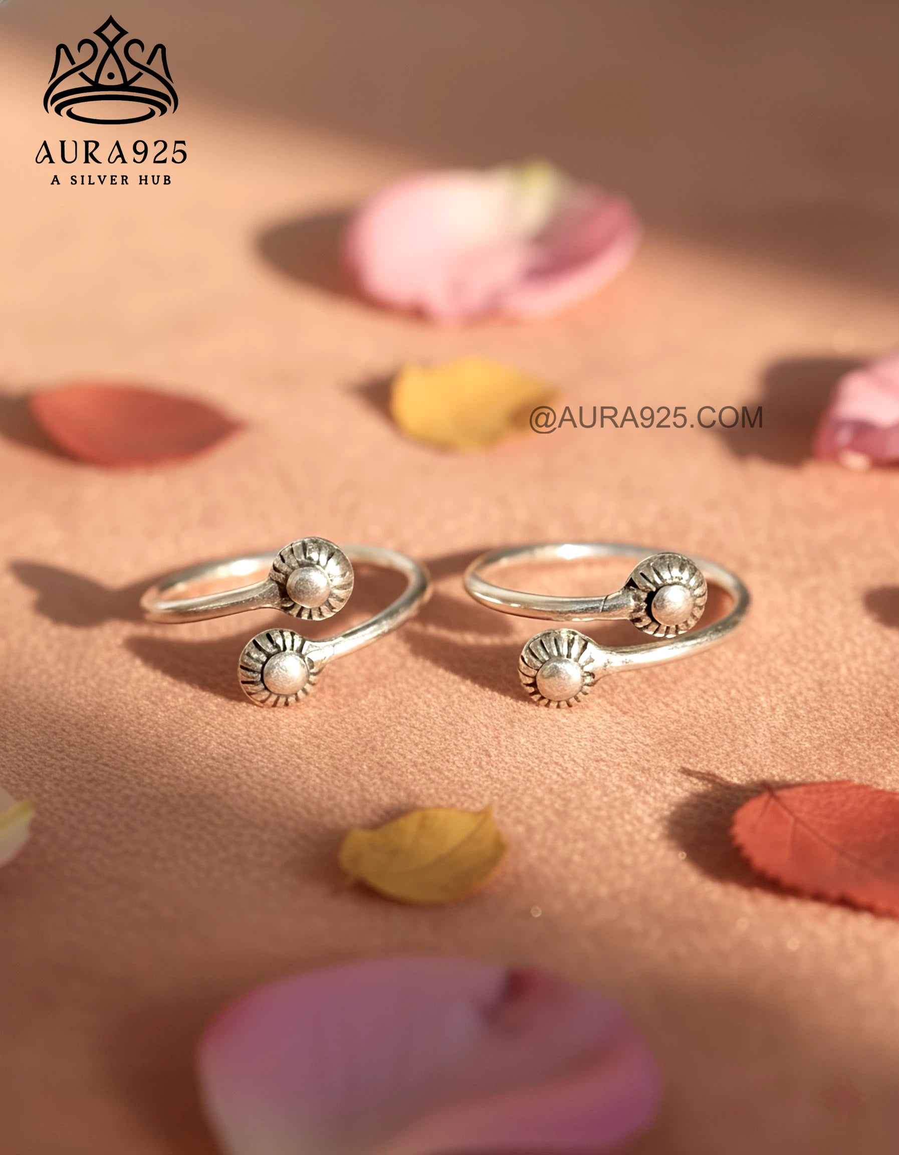 š Dual Sunburst Silver 925 Adjustable Toe Ring Pair š