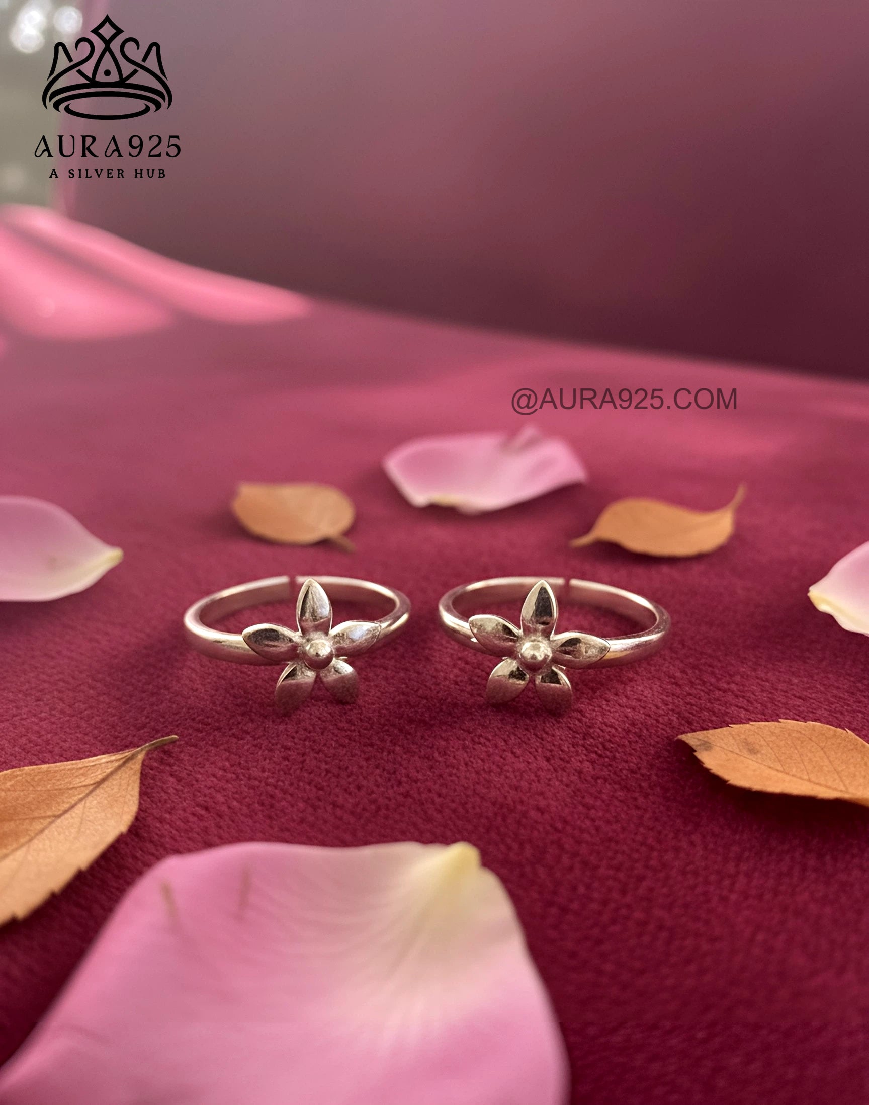 Delicate Silver 925 Plumeria Flower Toe Ring Pair SLTR-9935